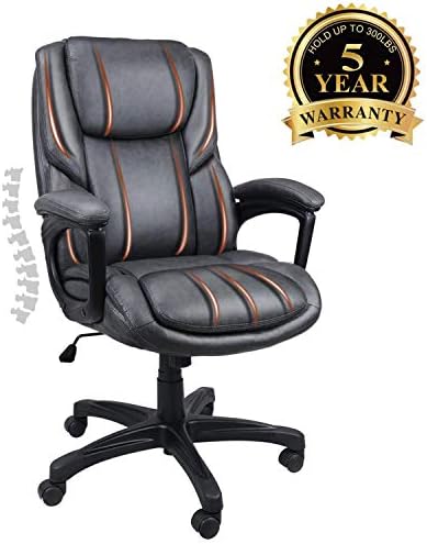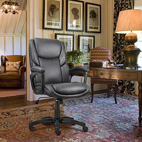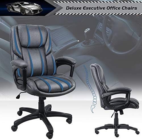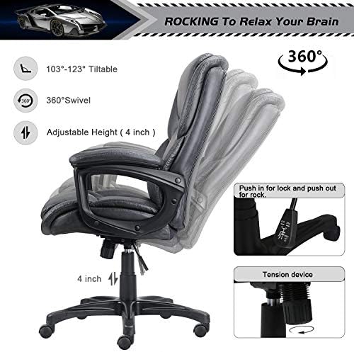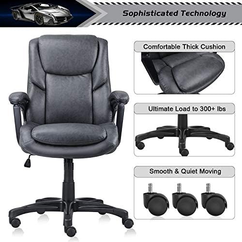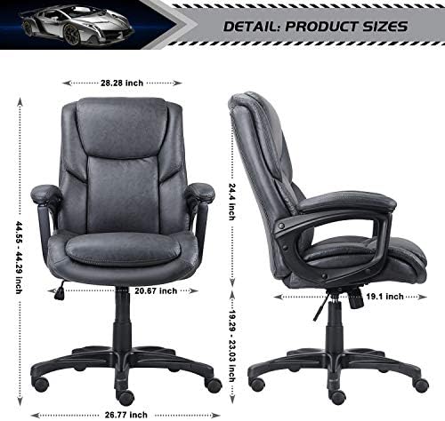 0ffice Chair Adjustable Ergonomic Desk Chair with Padded Armrests,Executive PU Leather Swivel Task Chair with Lumbar Support (O-Grey) (2645)