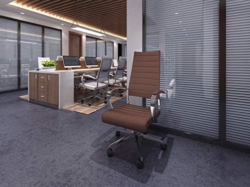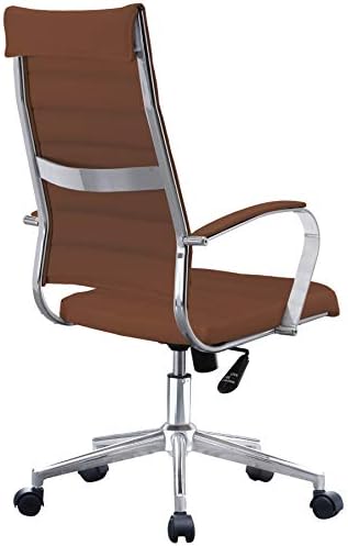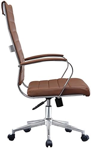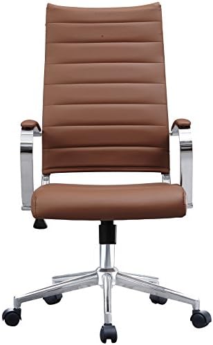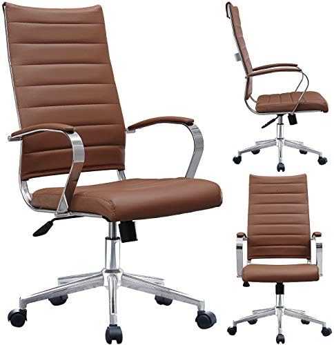2xhome Contemporary Mid Century Modern High Back Tall Ribbed PU Leather Swivel Tilt Adjustable Chair with Back Swivel Wheels Designer Boss Executive Office Conference Room Task Desk Chrome (Brown)
