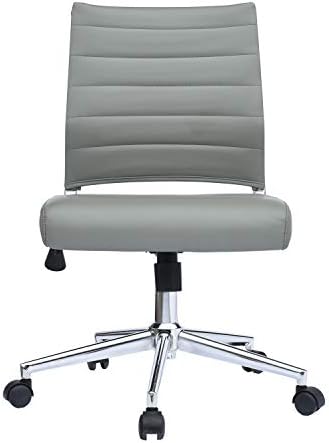 2xhome Gray Modern Ergonomic Executive Mid Back PU Leather No Arms Rest Tilt Adjustable Height Wheels Cushion Lumbar Support Swivel Office Chair Conference Room Home Task Desk Armless