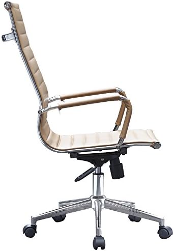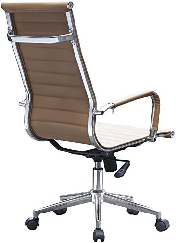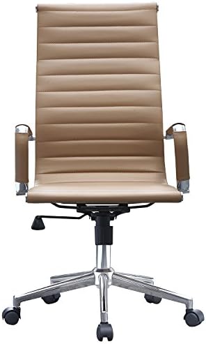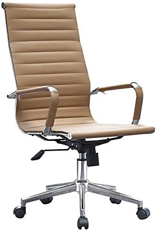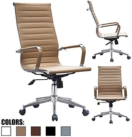 2xhome – Modern High Back Tall Ribbed PU Leather Swivel Tilt Adjustable Chair Designer Boss Executive Management Manager Office Conference Room Work Task Computer (Tan)