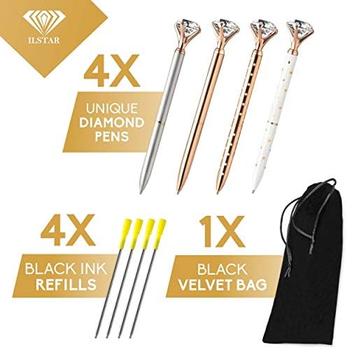 Price: (as of – Details) 💎 Dare to be different and impress everyone with this big crystal diamond pen set that include:💎 UPGRADE YOUR DESK WITH A LUXURY DIAMOND PEN SET. Get ready to receive lots of compliments, with this new rose gold pen set made from 4 pieces of diamond pens rose gold, 4 Extra