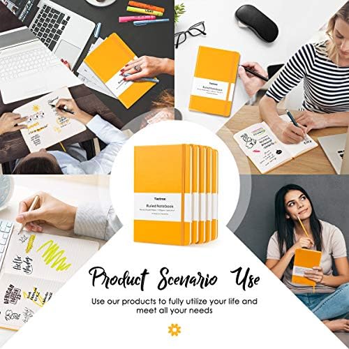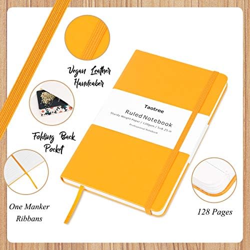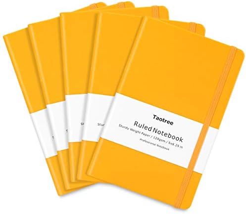 5 Pack Journal Notebooks, Taotree Yellow Classic Ruled Writing Notebook, Hard Cover PU Leather, 120gsm Premium Thick Paper, Inner Pocket, 128 Pages, 5″×8.25″ for Office Business Supplies