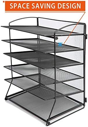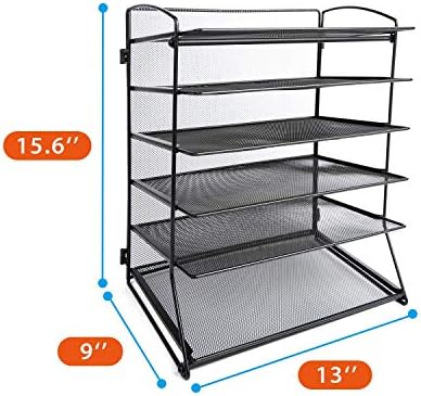 6-Tier Metal Mesh Desk File Organizer Desk Letter Paper Tray Holder for Office Home Black