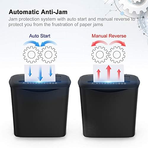 Jam Protection: Bonsaii Paper Shredder for Home Use,62 dB low noise, angled feed entry for safety with auto start mode and manual reverse to clear paper jams,when it happen you could switch the REV botton manually to clear out the jams easily. perfect for light use in a small business or home office, the shredder conveniently fits under a desk or other workstation for easy access throughout the day.