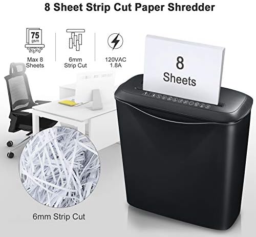 8-Sheet Strip Cut Home Paper Shredder,bonsaii CD and Credit Card Office Shredder Machine with Overheat and Overload Protection,3.5 Gallons Wastebasket,Black (S120-C)