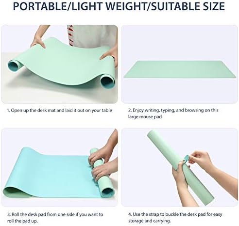 🔹DOUBLE-SIDED USE & GREAT ORGANIZER: 9 different color-match office decor mats are available. Choose your color to decor your desk. The specially designed pad has the same material but different colors on each side. 2 sides can be used as mouse pads and writing pads. Come with a strap to roll up the desk pad, which is very easy to store and carry.