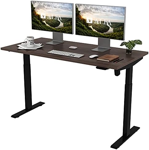 ALFA Furnishing Height Adjustable Desk, 60” x 30” inches Whole Piece Desk Board, 2 Pre-Set Memory Button Electric Sit Stand Desk Standing Desk for Home Office Workstation