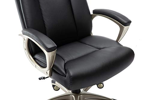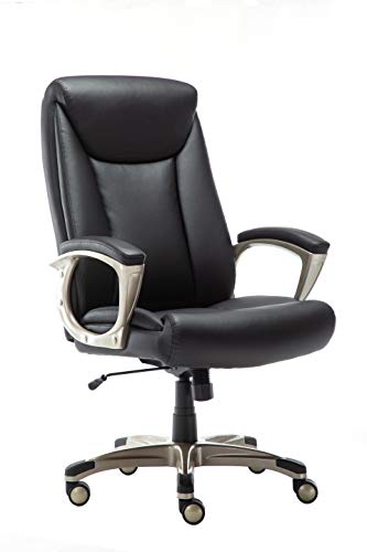 Price: (as of – Details) An Amazon Brand High-back executive chair for big and tall users; commercial-grade components; supports up to 350 poundsUpholstered in bonded brown leather, curved arm restsComfortable tilt with infinite locking adjustment for setting chair to preferred angle; 360-degree swivel; smooth-rolling castersPneumatic control handle for raising/lowering the seat; seat adjusts from 18.75