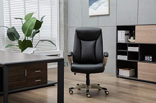 AmazonBasics Bonded Leather Big & Tall Executive Office Computer Desk Chair, 350-Pound Capacity – Black, BIFMA Certified