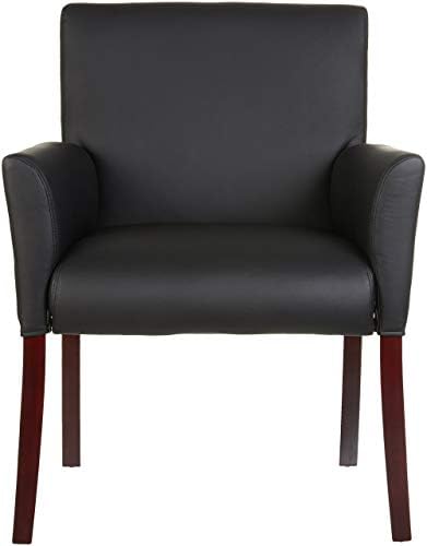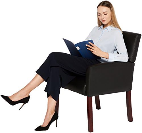 AmazonBasics Classic Reception Office Chair with Mahogany Wood Finish Legs – Black, BIFMA Certified –