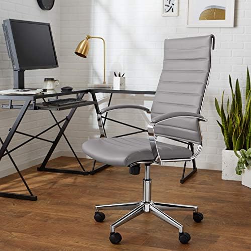 Price: (as of – Details) An Amazon Brand Ergonomic design offers reliable back support for daily usePolished chrome details and durable polyurethane faux leather ribbed upholsterySturdy five-point base with rolling caster wheels for smooth mobilityOne-touch height adjustment allows you to easily modify the chair’s height, reducing neck and back strainDurable construction with 330 pound weight