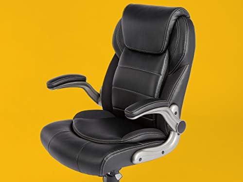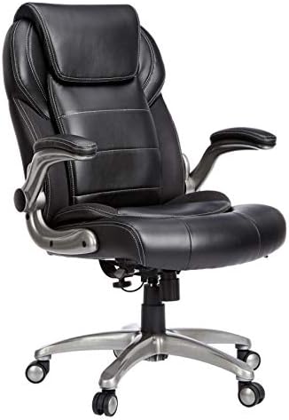 Price: (as of – Details) An Amazon Brand Upholstered in quality leather for style and durabilityErgonomic design with segmented padding on the seat and backAdjustable seat height, and tiltFlip-up arm rests to allow for more flexibility and motion-range when desiredSturdy framework set on a 5-point aluminum base with oversized rolling caster wheels for extra durability