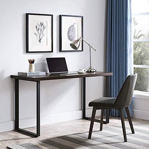 Standard Home Office Computer Desk: 55″L x 23.6″W x 29.9″H, the desk panel is made of MDF (wooden medium density fiberboard) refined, panel thickness is 1.57 inches, and metal bracket can withstand a weight of around 220 pounds.