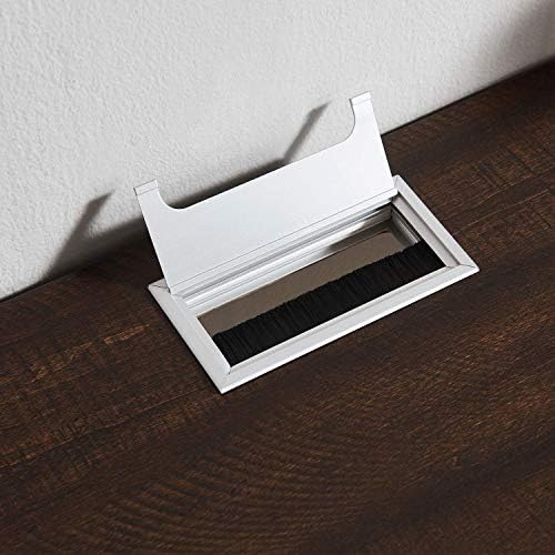 An open metal slot on the computer desktop allows easy access to power cords, cables and keeps wires organized.