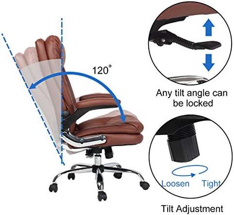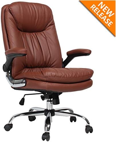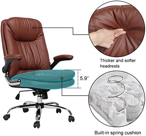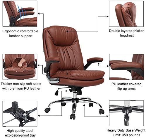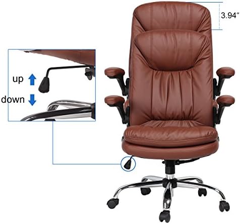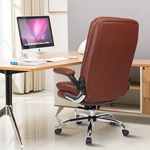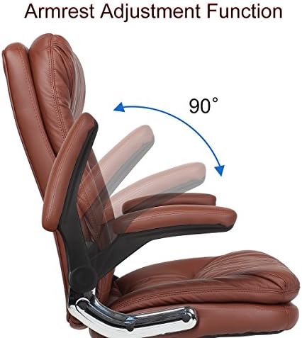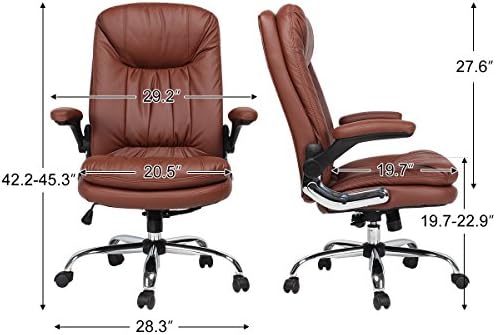 B2C2B Ergonomic Office Chair – High Back Desk Chair with Flip-Up Arms and Comfy Thick Cushion Leather Computer Chair Big and Tall 350LBS Brown