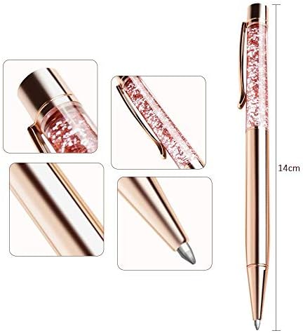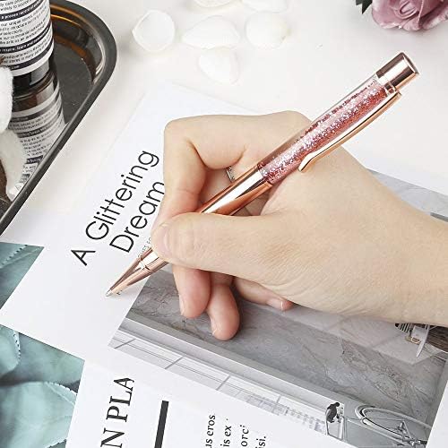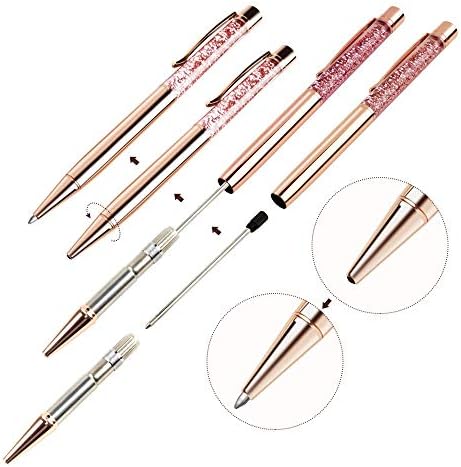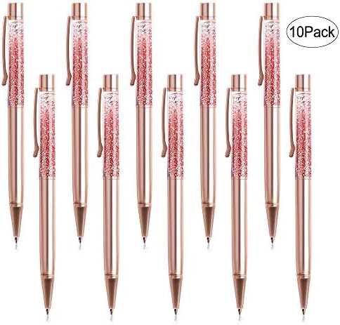 Ballpoint Pens, BYSOU 10 Pcs Rose Gold Metal Pen Refills Bling Dynamic Liquid Sand Pen Black Ink for Office Supplies (10 pieces)