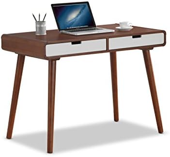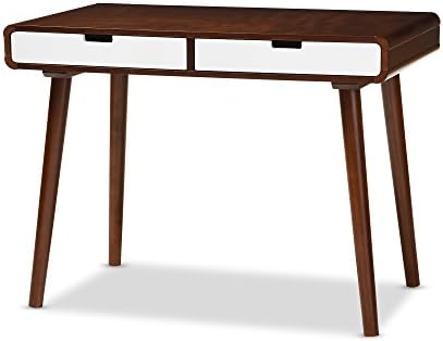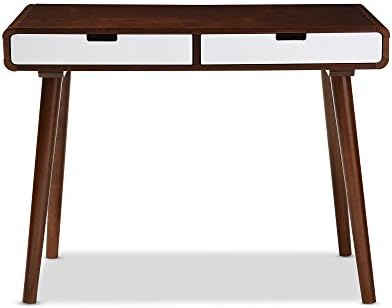 BAXTON STUDIO Casarano Two-Tone Finish 2 Drawer Wood Home Office Writing Desk, Dark Walnut/White
