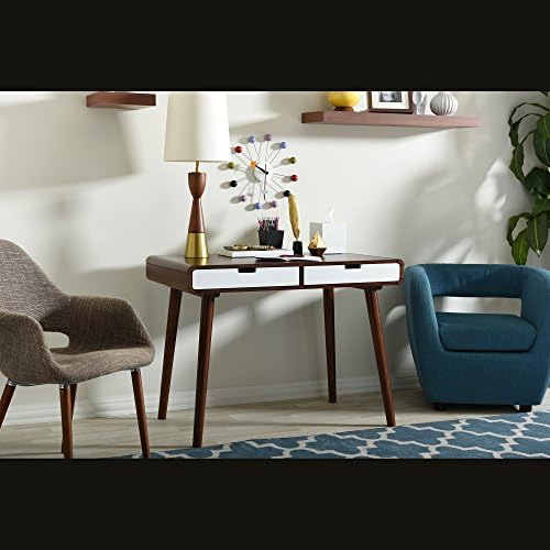 Price: (as of – Details) Materials: solid rubber wood and MDF veneerFinish: Two-tone in dark walnut and whiteRounded angles for curvy silhouetteSplayed legs