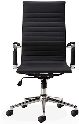BELLEZE Minimalist Ribbed Executive Office Chair with Arms, High Back Soft Faux Leather Conference Task, Adjustable Height & Swivel Wheels – Aria (Black)
