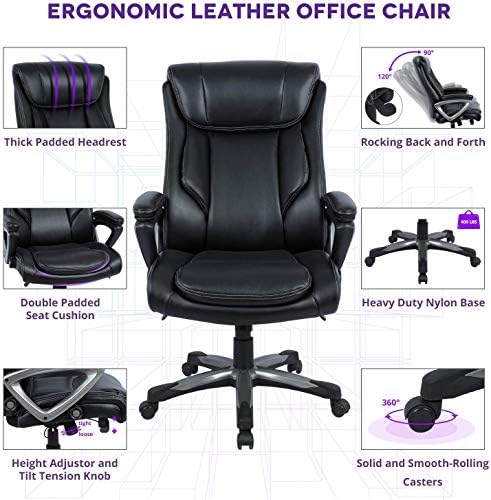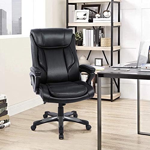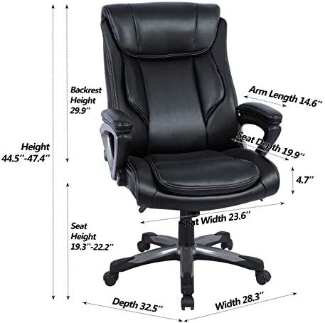 Price: (as of – Details) . High back executive chair features double padded back and 4.1 inch high density foam seat, ergonomic large headrest, lumbar padded, curved soft padded armrest, provide extra comfort sitting experience for users.The boss chair is made with Bonded leather that is waterproof and resistant stains, easy to wipe clean. The