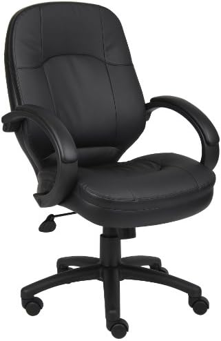 Price: (as of – Details) Beautifully upholstered in LeatherPlus. LeatherPlus is leather that has been infused with polyurethane for added softness and durability. Black arms with padded arm rests. 25″ nylon base. Hooded double wheel casters. Gas lift seat height adjustment. Adjustable tilt tension control. LeatherPlus is leather that has been infused with polyurethane for