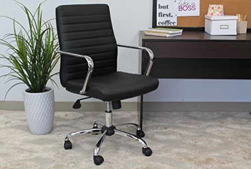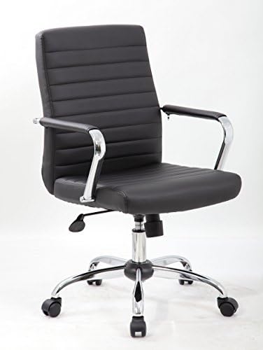 Price: (as of – Details) Retro task chair. Upholstered in Black durable Cares soft. Chrome fixed arms. Upright locking position. Pneumatic gas lift seat height adjustment. Adjustable tilt tension control. 25″ chrome base. Dual wheel casters. 250 lb. weight capacity. MAS Certified Green. Spring tilt mechanismUpright locking positionPneumatic Height adjustmentChrome base
