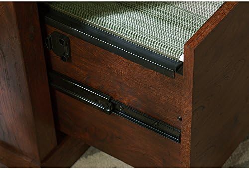 Create a beautiful home office space with the Bush Furniture Yorktown L Shaped Desk in Antique Cherry. Expansive Desk surface has plenty of room for a computer, printer, paperwork and more with extra space to spread out comfortably. An open storage cubby below holds a laptop or tablet when not in use to keep the L Shaped Desk surface clear from clutter. Box drawer stores office supplies, and a file drawer extends fully on smooth ball-bearing slides for easy access to letter-sized papers. With a weathered Antique Cherry finish accented by oil-rubbed Bronze drawer pulls and beveled edge detailing, the L Shaped Desk makes an attractive addition to your existing home furnishings. See the full Yorktown Collection for all available coordinating items. Backed by the Bush Furniture 1 Year Manufacturer’s Warranty, the L Shaped Desk meets ANSI/SOHO quality test standards for performance and safety.