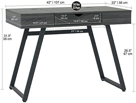 Price: (as of – Details) The perfect combination of modern style and functional features, the Rockdale Laptop Multi-Compartment Laptop Desk with Charging Station offers storage solutions and a built-in power supply strip to keep your laptop, phone, and other accessories charged. Designed for small spaces, this office desk has a drawer and tops that lift