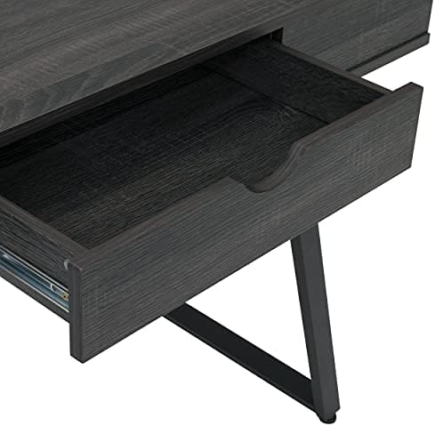 Calico Designs Rockdale Modern Office Writing Laptop Desk with Multiple Storage Compartments, Cord Management and Charging Station, Charcoal Black/Shortcrest Grey