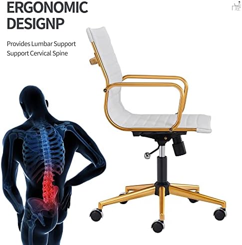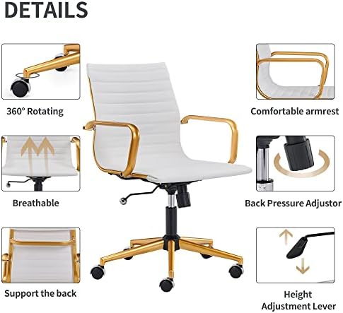 · ✅WHITE GOLD DESK CHAIR: With ergonomic tilt function, you can lean back knowing this white desk chair is comfortable. Relieving back pain and protecting your spine.