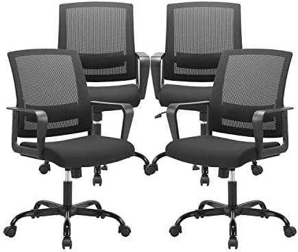 CLATINA Ergonomic Rolling Mesh Desk Chair with Executive Lumbar Support and Adjustable Swivel Design for Home Office Computer Black 4 Pack