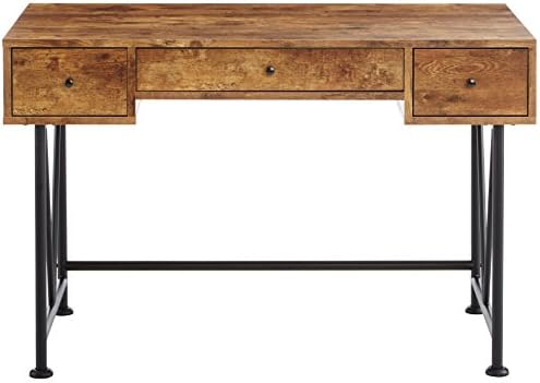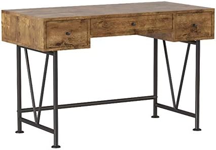 Price: (as of – Details) Enjoy an interesting design with earthy ambiance. Ideal for a student’s room or small home office, this writing desk lends a hint of industrial style. Lovely antique nutmeg finish over its desk unit blends with a black metal finish steel frame. Geometric accents keep the motif contemporary and stylish. Find