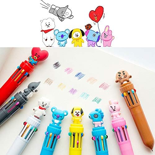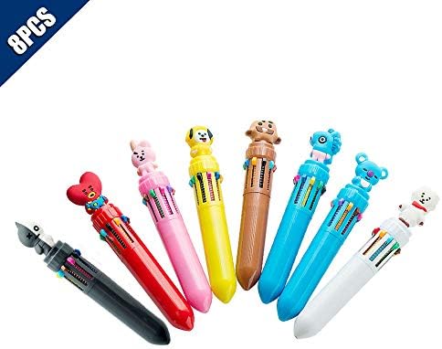 Comidox 8Pcs BTS Bangtan Boys 10 in 1 Color Retractable Ballpoint Pen Creative Cartoon Shape Multicolor Pens Medium Point (0.7mm) For School Office Student Supply