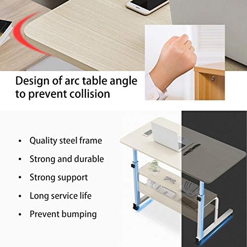 [Suitable for small space] : There are two storage racks under the desktop, on which you can put your favorite books, plants and decorations for easy access.The mobile desk with four smooth rollers allows you to move easily, and the four wheels can be fixed to prevent movement.