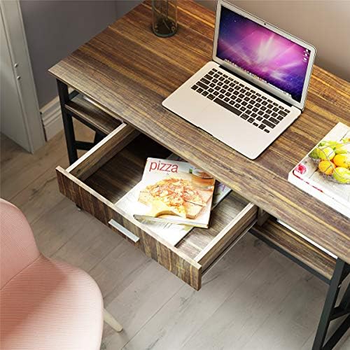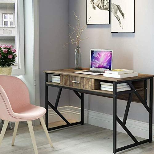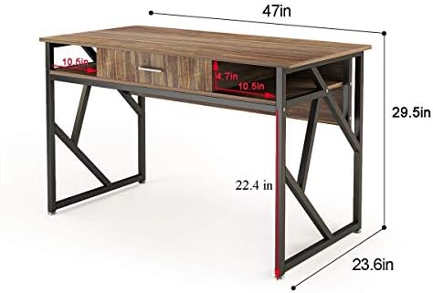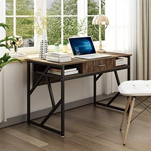 Price: (as of – Details) Well-constructed and Sturdy:Crafted from E1 particle board and electrostatic metal spraying black metal frame,and it features a drawer and two grid for additional storage space,bring you a pleasant and positive working or studying environment;Large Workstation Space with Drawer and Shelf:Ample storage options are provided by fixed shelving and drawers, complete