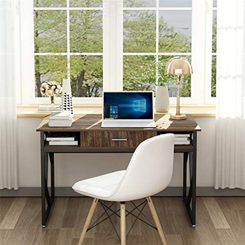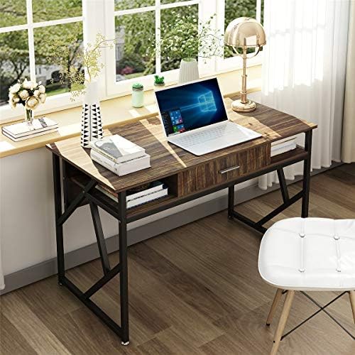 Computer Desk with Drawer DEWEL 47” Executive Desk Office Writing Desk PC Laptop Workstation Space-Saving Study Desk with Storage for Home Office Study Rustic Easy Assembly