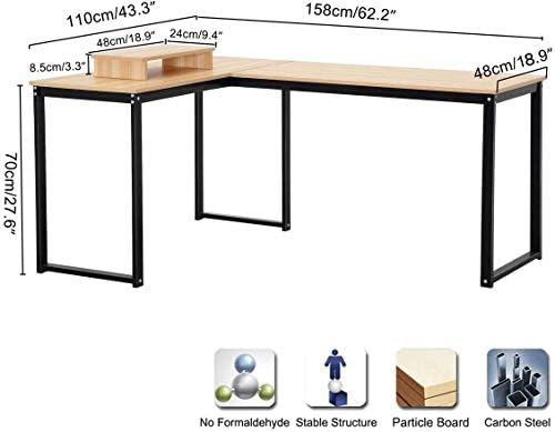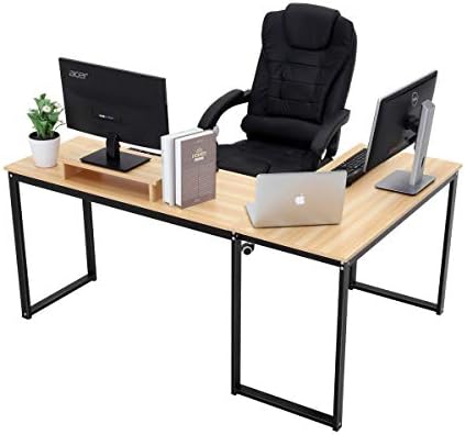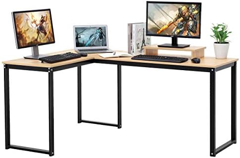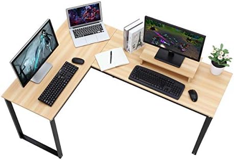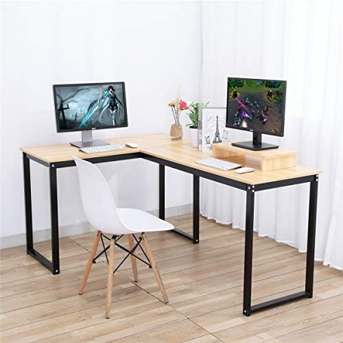 Computer Desk, ZCH L-Shaped Large Corner PC Laptop Study Table Workstation Gaming Writing Desk for Home Office – Free Monitor Stand – Wood & Metal – Beech Wood Grain