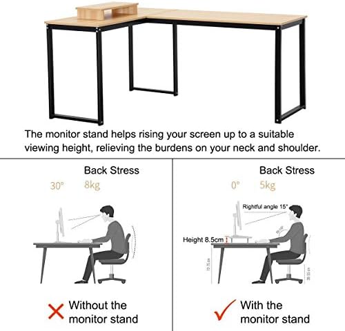 ★【Computer Desk】 The FREE monitor stand helps rising your screen up to a suitable viewing height, relieving the burdens on your neck and shoulder. It is also suitable for putting TV, printer, cellphone, laptop, etc.