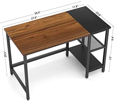 CubiCubi Computer Home Office Desk, 40 Inch Small Desk Study Writing Table with Storage Shelves, Modern Simple PC Desk with Splice Board, Walnut/Black