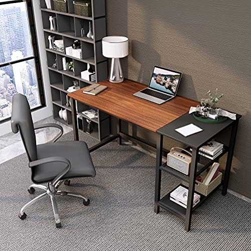 Modern Confident Style: CubiCubi home computer desk delivers a peaceful user experience to you wherever at office or home. This desk unifies rigid metal with tasteful, rustic brown and black wooden boards. It is as fashionable as functional that the splice board and 2-tier open shelves design. Made the right choice for your home
