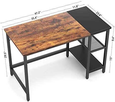 Modern Confident Style: CubiCubi home computer desk delivers a peaceful user experience to you wherever at office or home. This desk unifies rigid metal with tasteful, rustic brown and black wooden boards. It is as fashionable as functional that the splice board and 2-tier open shelves design. Made the right choice for your home