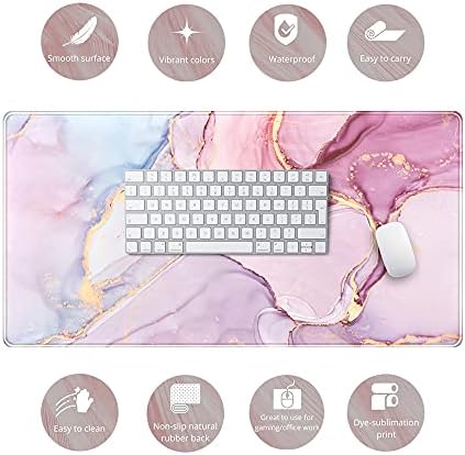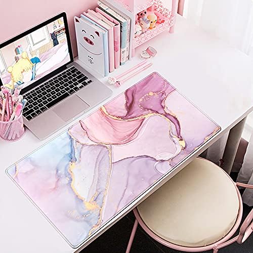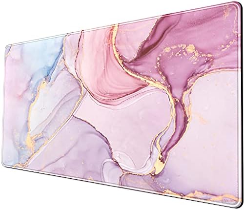 Desk mat XXL Mouse pad, Pink Rose Gold Marble Office Supplies and Accessories Decor Office for Women 31.5X15.75in,Stitched Edges Smooth Surface and Non-Slip Rubber Bottom,Large Mouse pad for Desk …