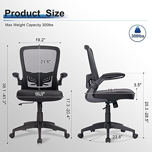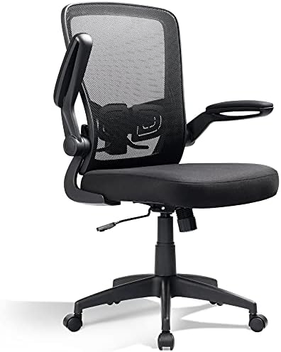 DEVAISE Mesh Computer Office Chair, Ergonomics Computer Desk Chair with Flip-up Armrest and Adjustable Lumbar Support, Black