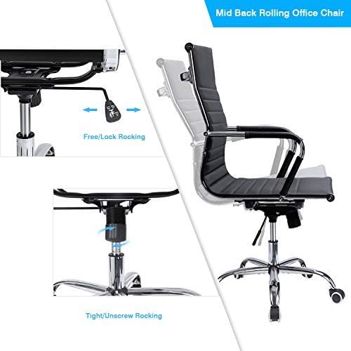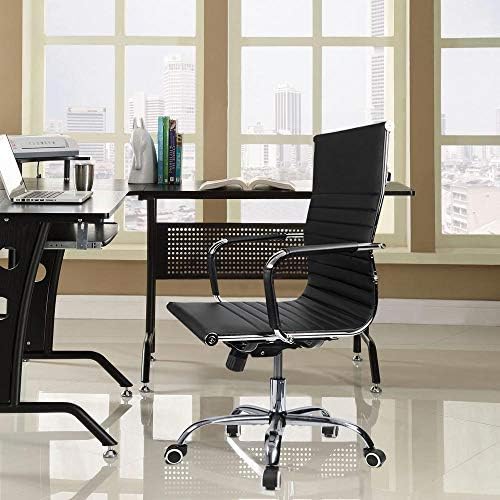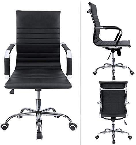 Devoko Office Desk Chair Mid Back Leather Height Adjustable Swivel Ribbed Chairs Ergonomic Executive Conference Task Chair with Arms (Black)