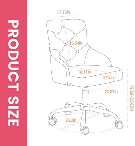 Price: (as of – Details) Soft velvet tufted fabric chair which not only has a stylish looking but also has durable materials.When you finishing your one day work, you can enjoy sitting on the task chair in your living room or bedroom and you can also do some work with the office chair.Package Includes:High-Back Office ChairAssemble Accessories and ToolsInstruction Manual
