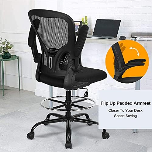 Drafting Chair Tall Office Chair – Ergonomic Mesh Standing Desk Stool with Flip-Up Arms, Conference Room Computer Chairs with Adjustable Foot Ring, Executive Rolling Swivel Chair for Home & Office.