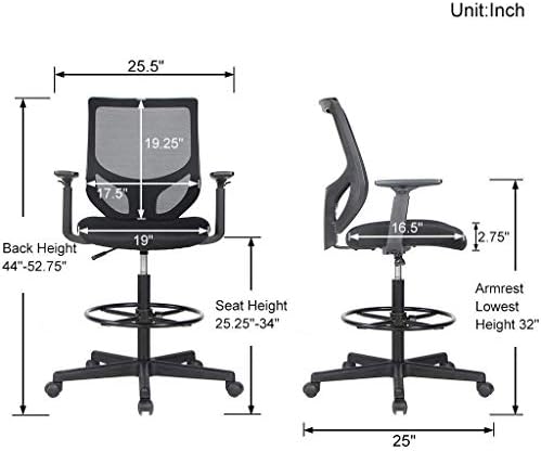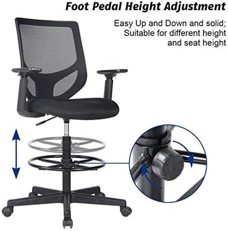 Extremely Good Air Permeability: Comfortable drafting chair with mesh back, will promote air circulation, allowing you to sit cozily for long hours. Built-in lumbar support helps prevent back strain and muscle fatigue.