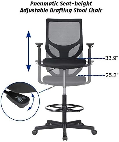 Drafting Chair Tall Office Chair for Standing Desk Drafting Mesh Table Chair with Adjustable Armrest and Foot Ring