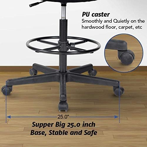 Smooth Rolling Casters: Our drafting chair comes with safe, multi-direction casters that allow you to easily move the chair around with zero effort. Soft PU material casters can protect your favorite hardwood floor, carpets and other mats, ensure smooth and quiet moving on any surface.