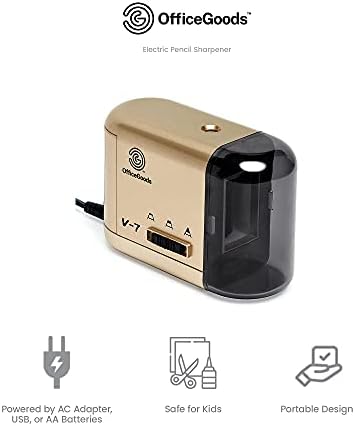 Electric Pencil Sharpener – Compact & Portable Heavy Duty for Colored Pencils, Artists, Office, School & Home – Battery & Electric Operated, Gold